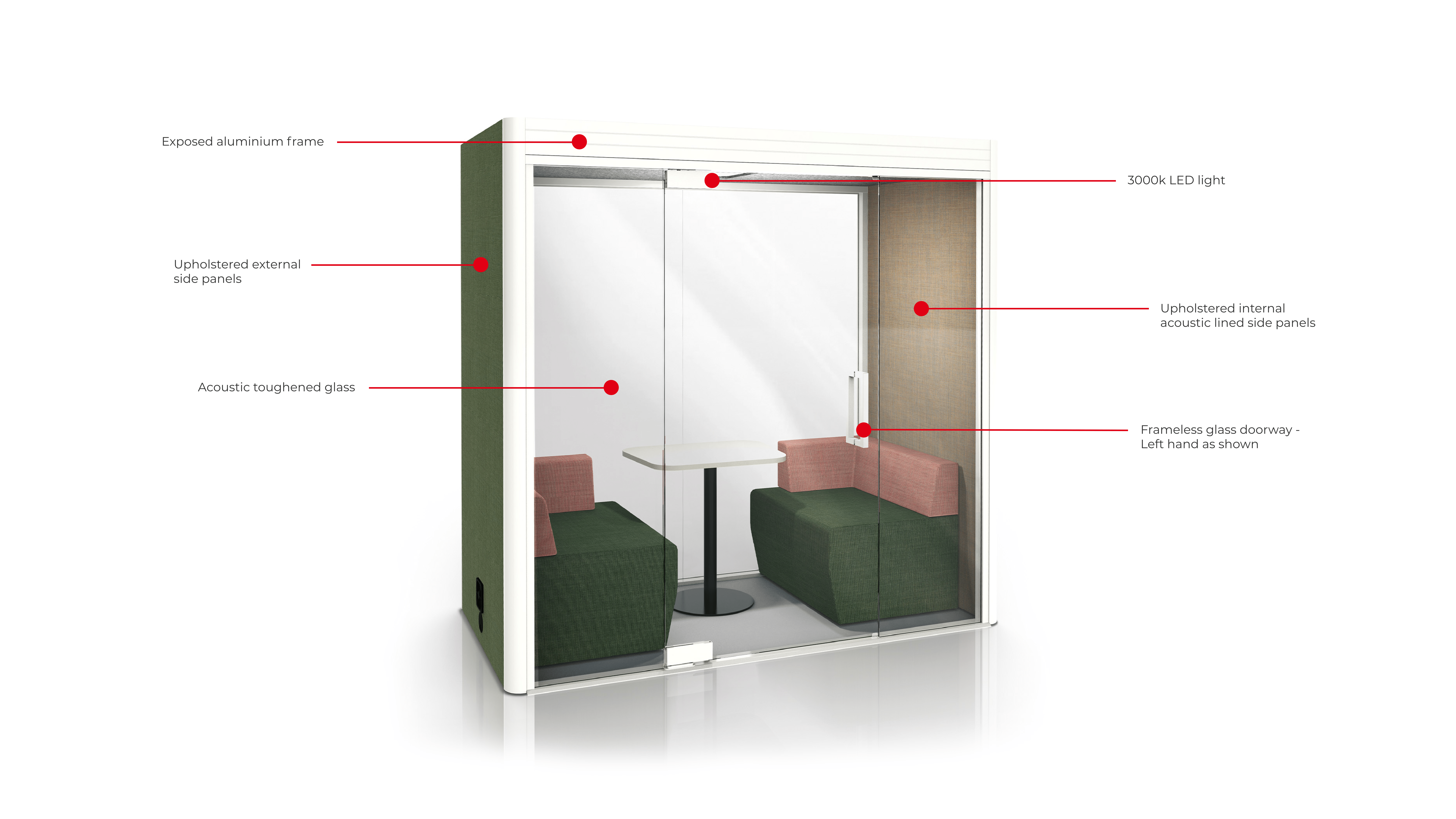 The Line Duo Pod View provides a peaceful environment for phone calls, video conferences, interviews, private meetings and a silent retreat for uninterrupted work for up to two people. The pod is designed with your office in mind.