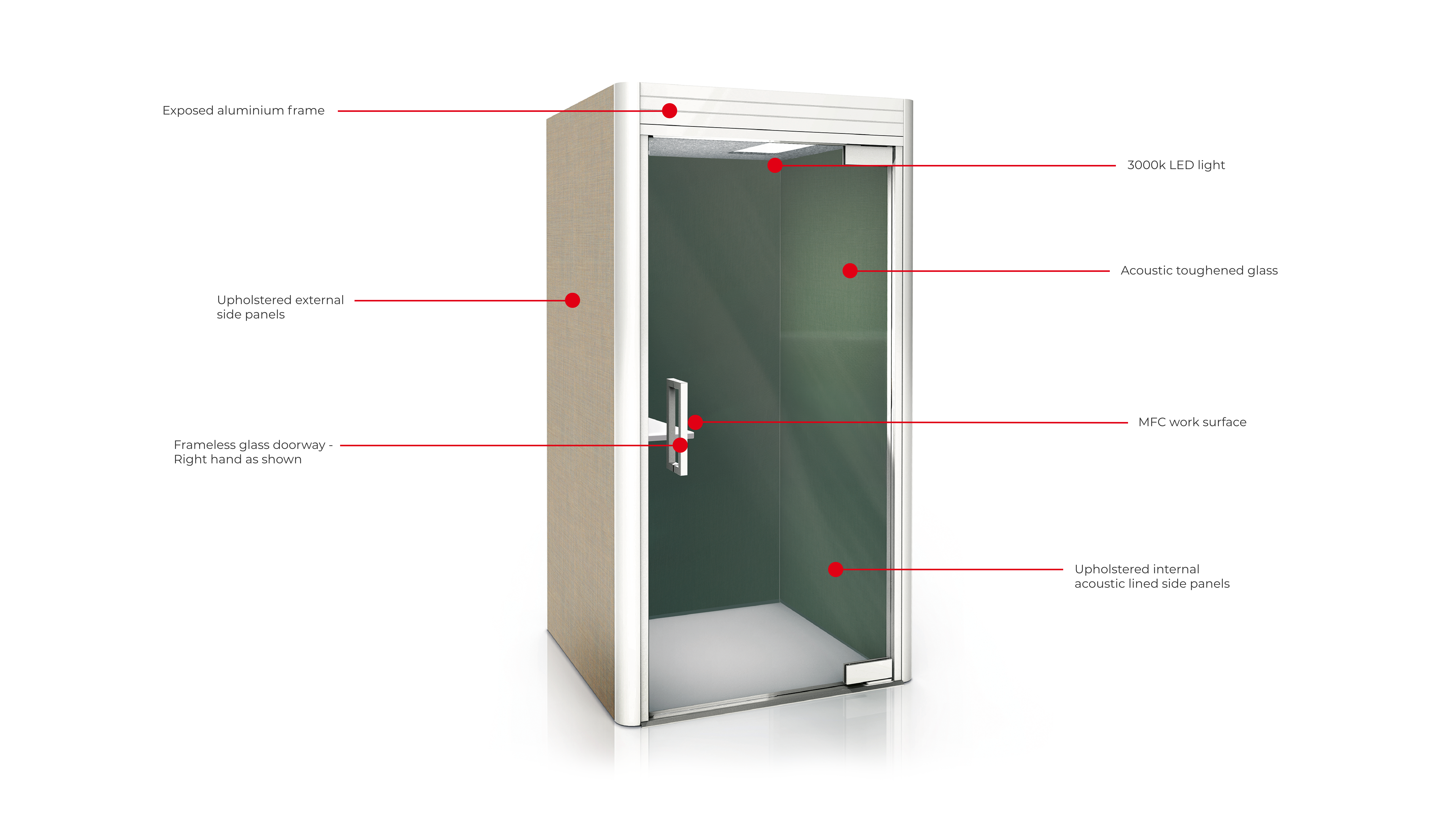 The Line Phone Booth provides a peaceful environment for phone calls, video conferences, interviews, private meetings and a silent retreat for uninterrupted work. The booth is designed with your office in mind.