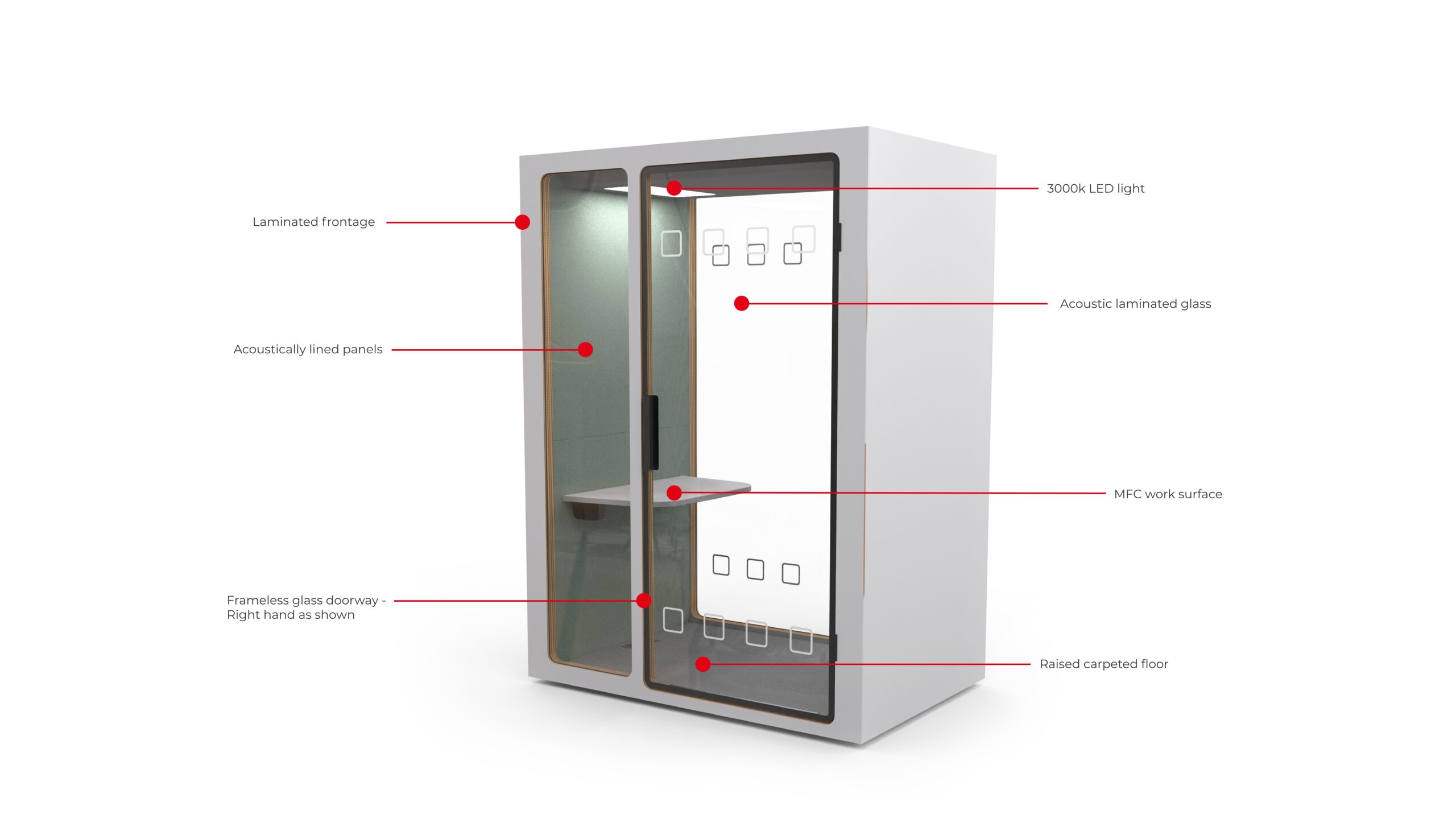Airflow and the airflow gap is essential for maintaining a comfortable and healthy environment within the acoustic pod, helping to dissipate any heat generated within the pod and ensures that air circulation is sufficient for occupants.
