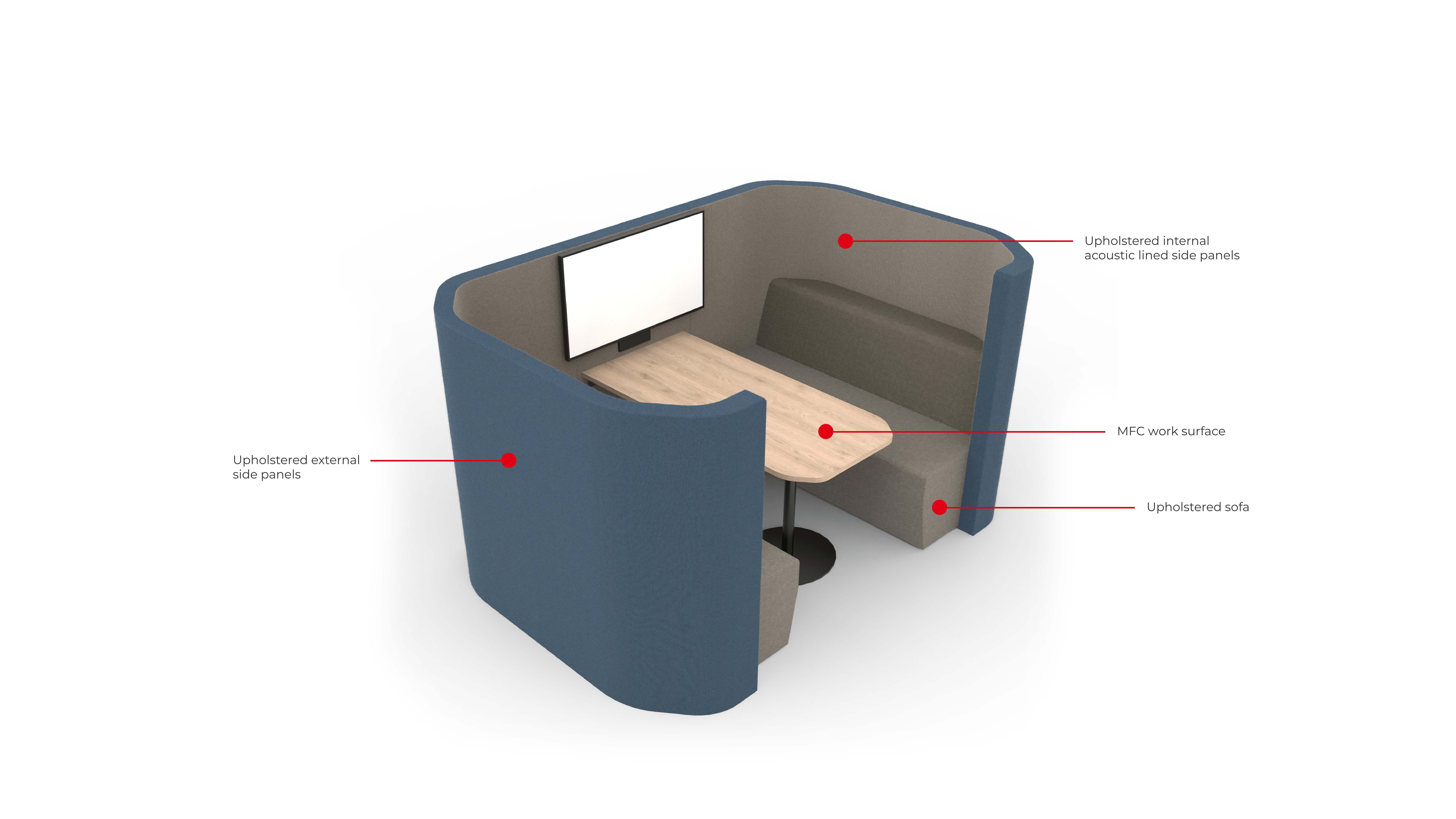 Hub works with your existing open plan feel, whilst the acoustic panels ensure users gain increased privacy for individual work or group collaboration.