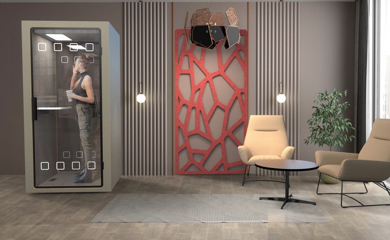 Pictured is one of Spacemann’s personal pods from the Silence range of Class B acoustic-certified designs for both modular and accessible solutions